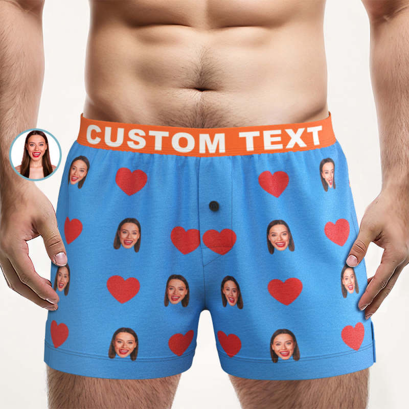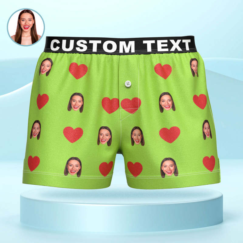 Custom Face Red Heart Design Boxer Shorts with Personalized Text on the Waistband Personalized Underwear for Him