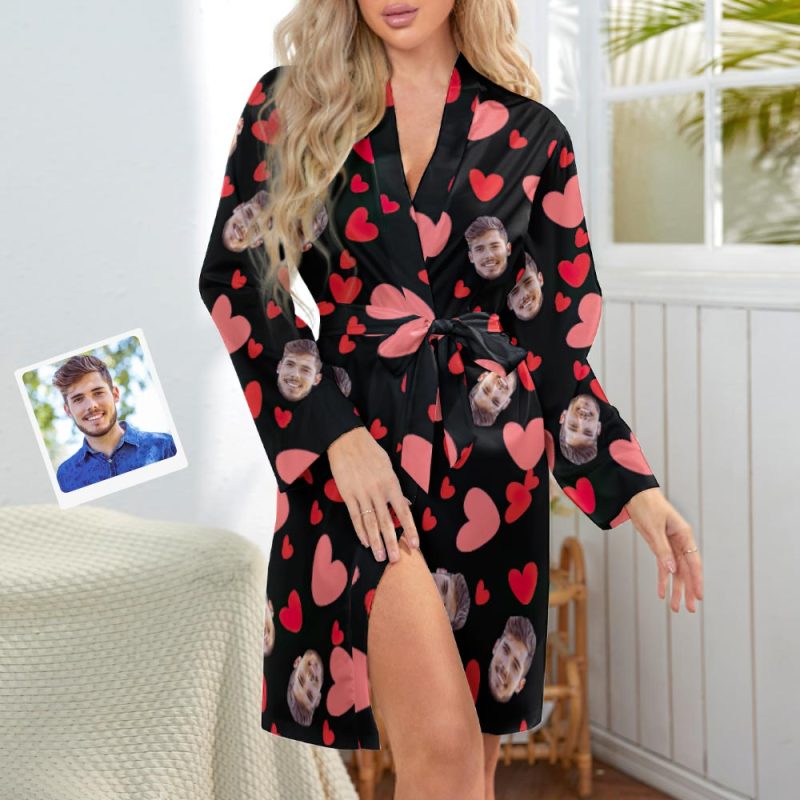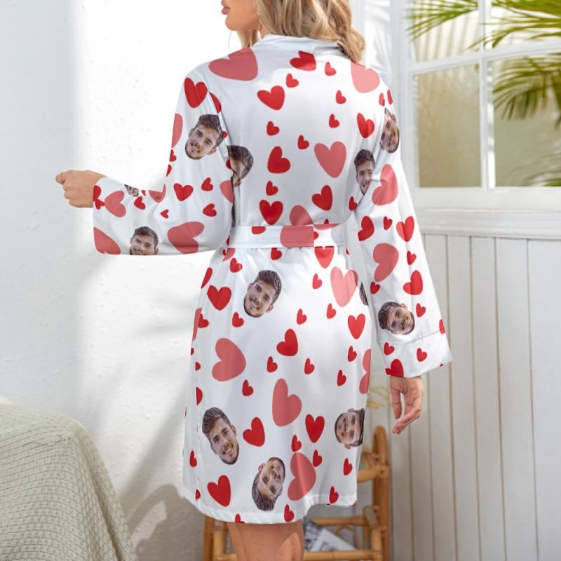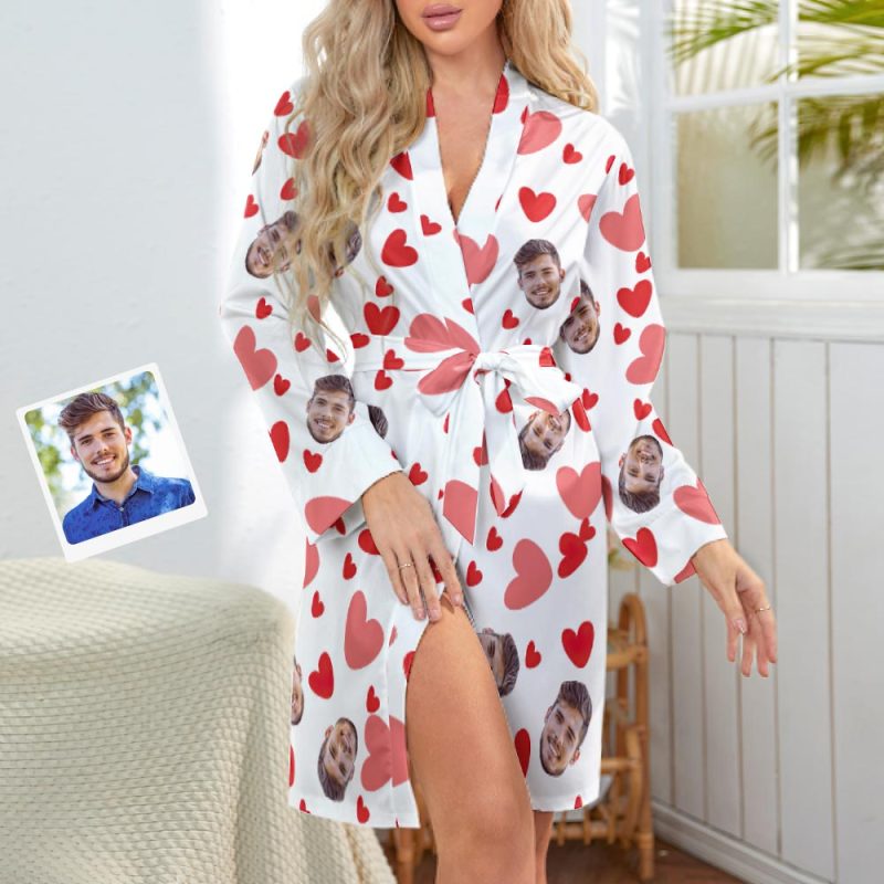 Custom Face Red Heart Printed Long Sleeved Nightgown Valentine's Day Gift