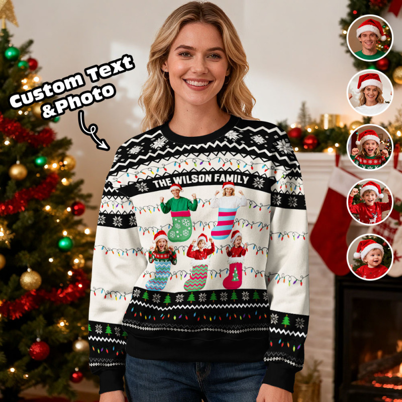 Custom Face Round Neck Hoodie Personalized Custom Photo Red Christmas Gifts For Family Ugly Sweater Xmas Leds Unisex Hoodies
