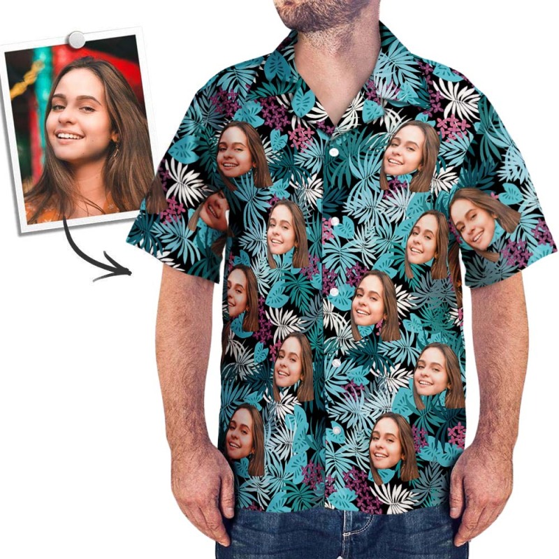 Custom Face Shirt Men's Hawaiian Shirt Palm Leaves