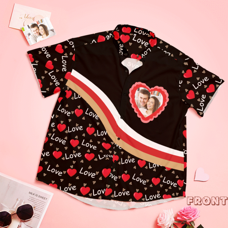 Custom Face Shirt Personalized Photo Black Hawaiian Shirt Valentine's Day Gift - Love