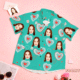 Custom Face Shirt Personalized Photo Green Hawaiian Shirt Valentine's Day Gift - Love Heart