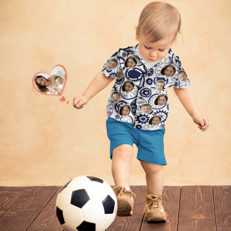 Custom Face Shirt Women's and Kids Hawaiian Shirts Short Sleeve Shirt Mother's Day Gift - Clock