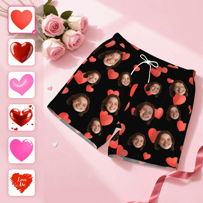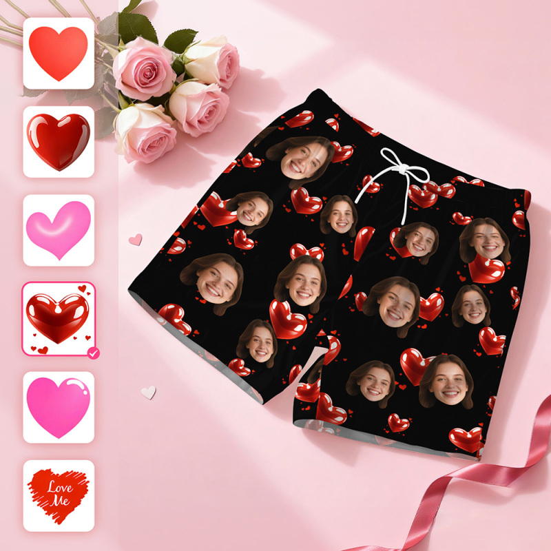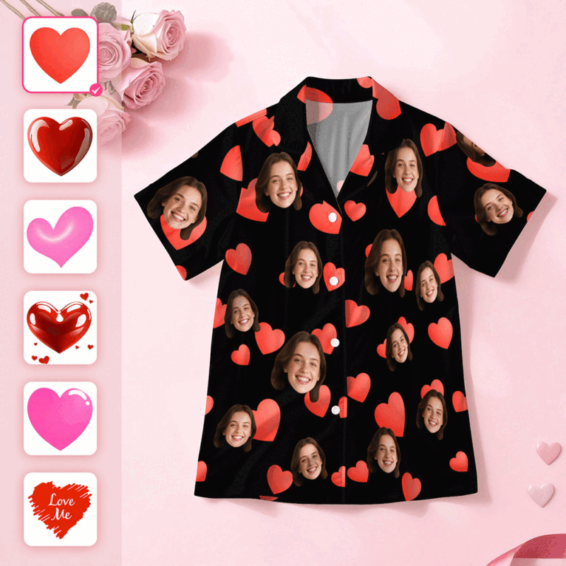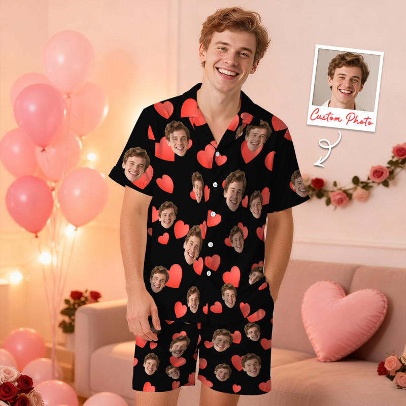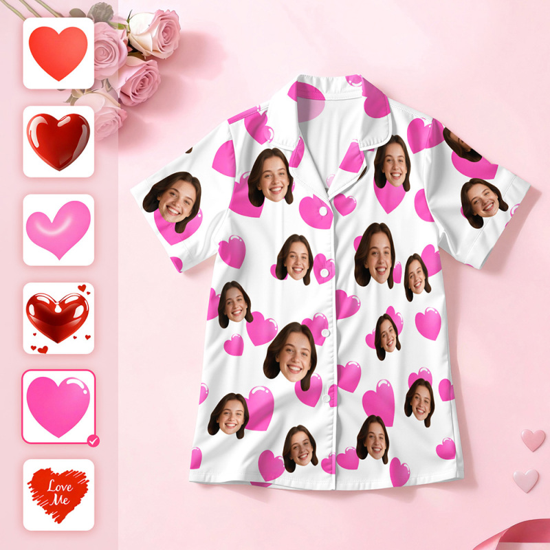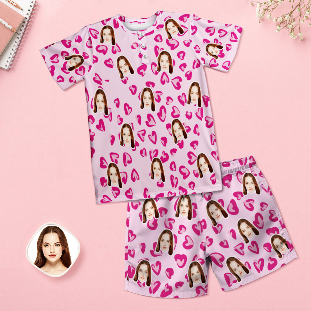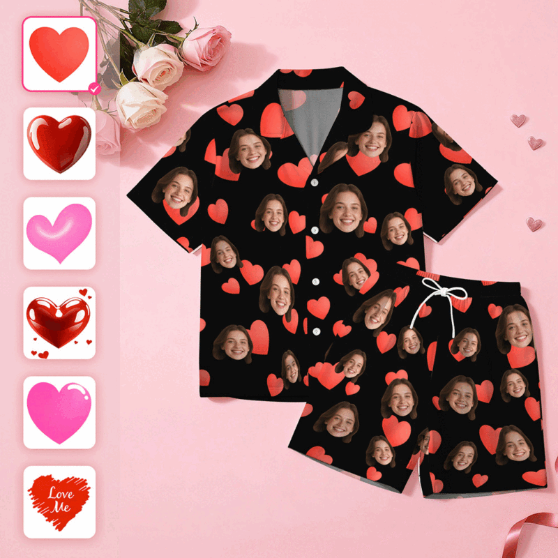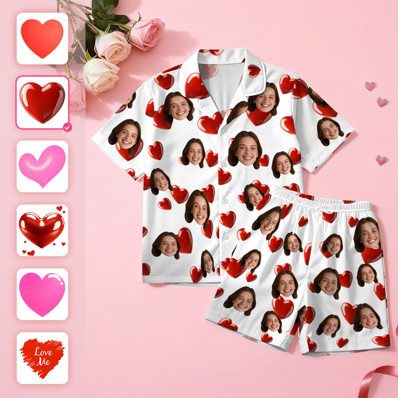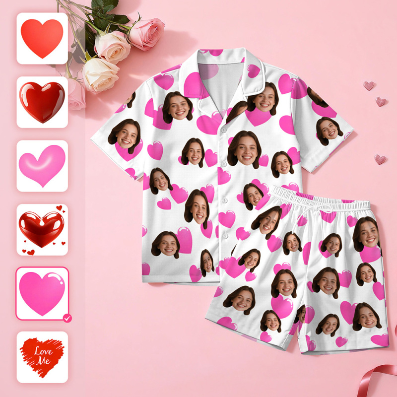 Custom Face Short Sleeve Pajamas Personalised Heart Face Couple Sleepwear Valentine Love Gifts For Her