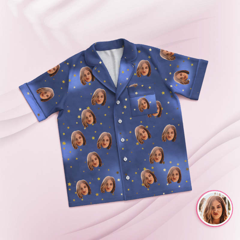 Custom Face Short Sleeved Pajamas Personalized Photo Blue Sleepwear Stars Holiday Gifts