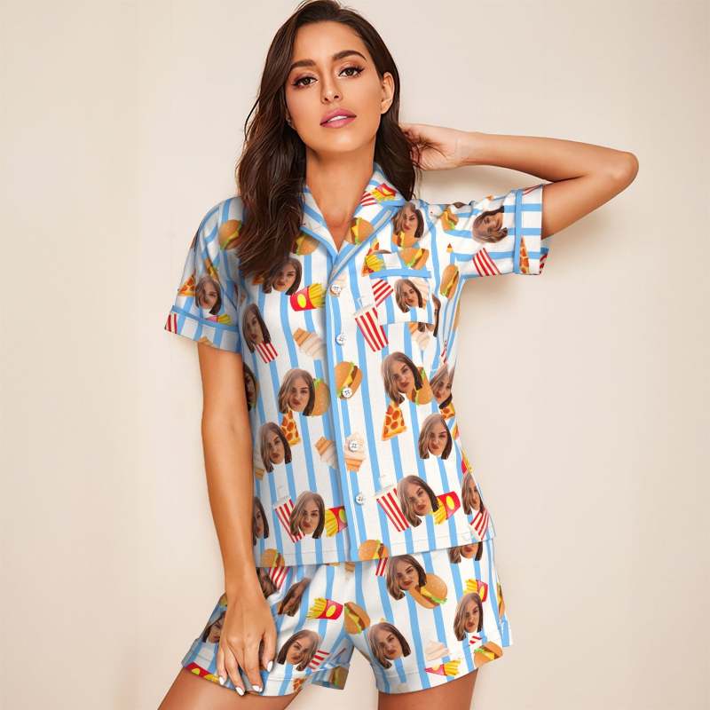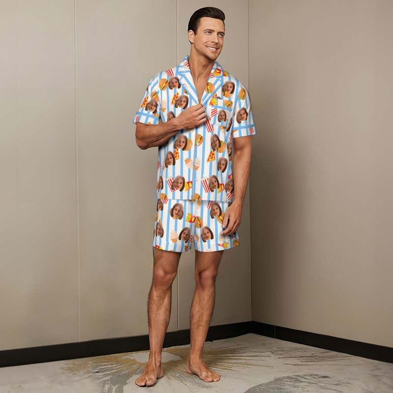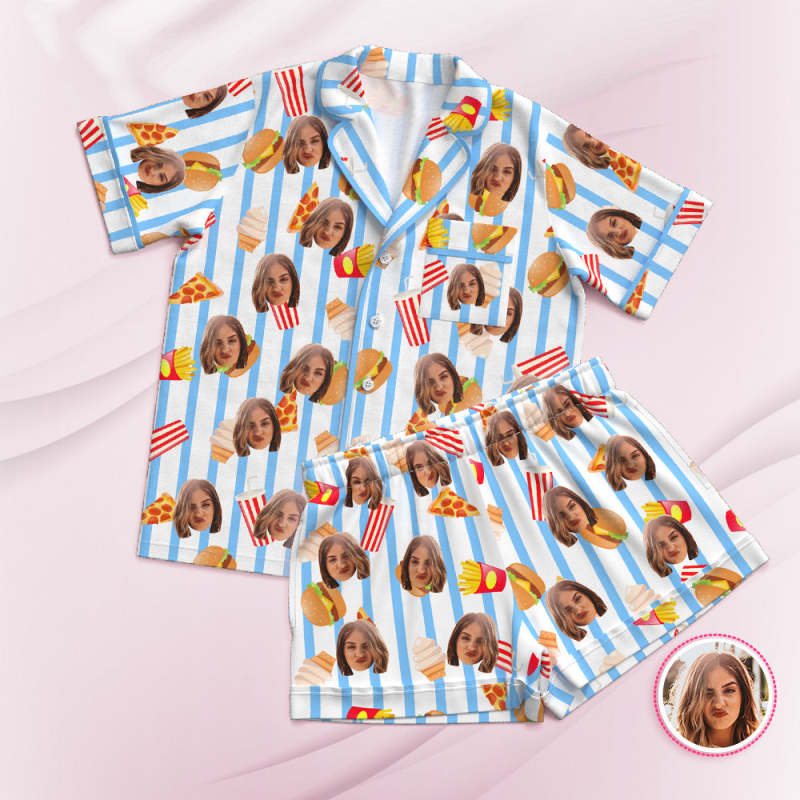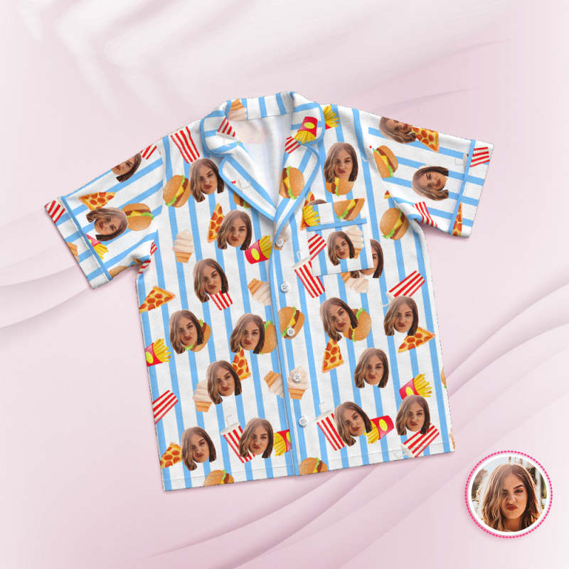 Custom Face Short Sleeved Pajamas Personalized Photo Sleepwear Fast Food Holiday Gifts
