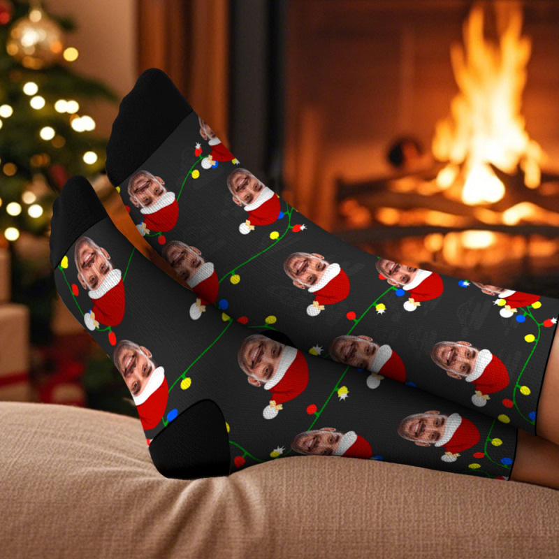 Custom Face Socks Christmas Socks Personalized Santa Tree Photo Socks Fun Gift for Family, Friends & Lovers