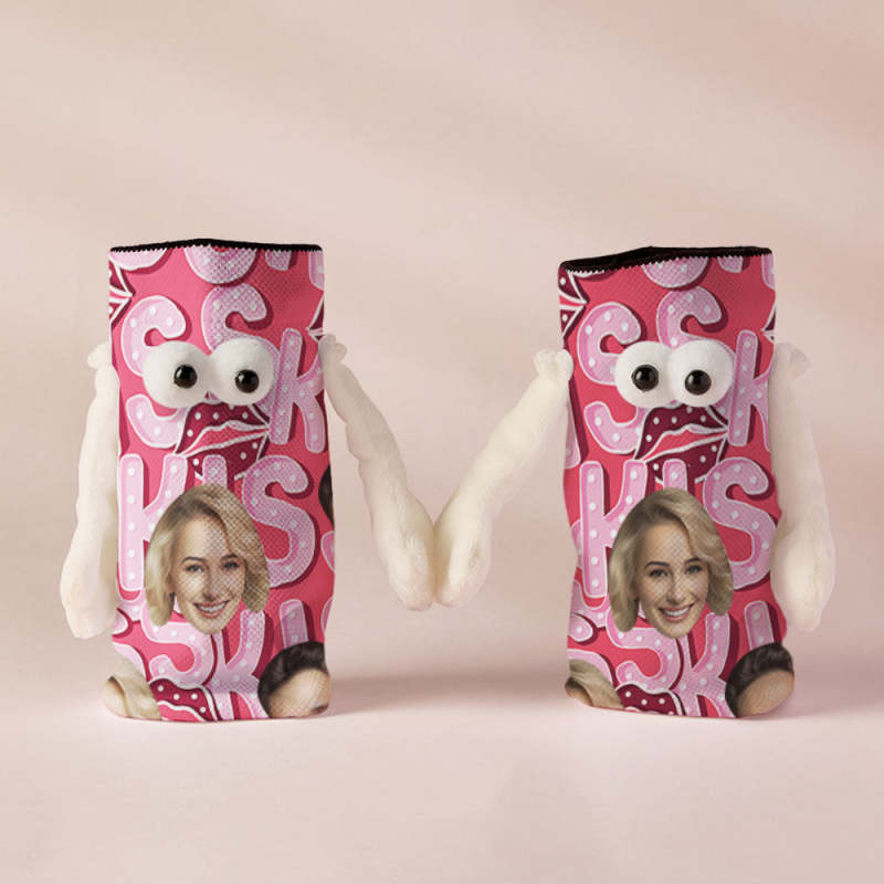 Custom Face Socks Funny Doll Mid Tube Socks Magnetic Holding Hands Socks Kiss Valentine's Day Gifts