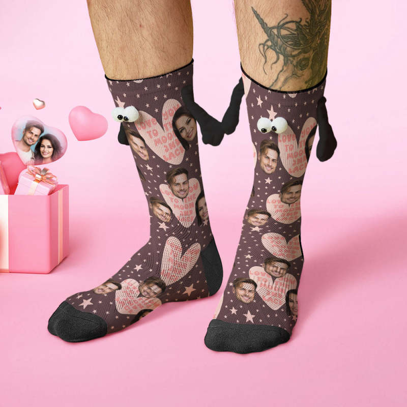 Custom Face Socks Funny Doll Mid Tube Socks Magnetic Holding Hands Socks Love You to The Moon And Back Valentine's Day Gifts