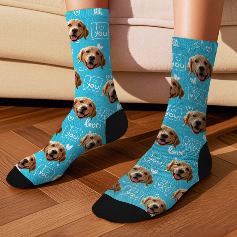 Custom Face Socks with Photos Custom XOXO I Love You Pet Lover Socks Funny Gift Idea