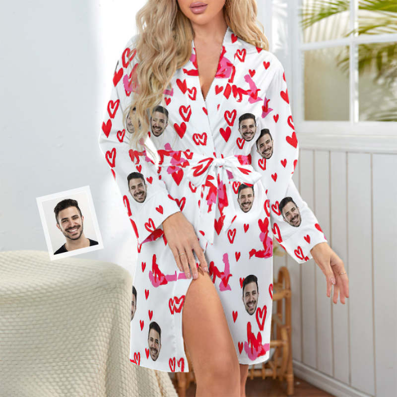 Custom Face Strawberry Long Sleeved Nightgown Sexy Gifts