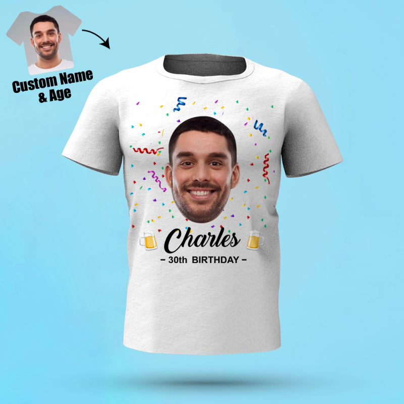 Birthday Gifts, Custom Face T-shirt Happy Birthday Name And Age Can Be Customized
