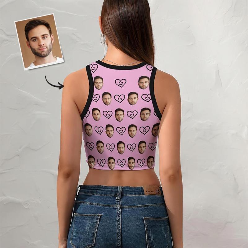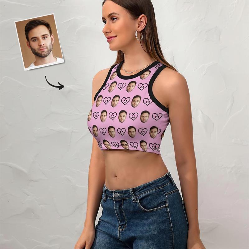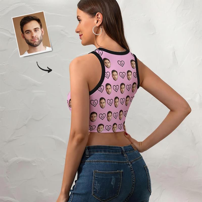 Custom Face Vest Heart Face Pink Sexy Customized Ladies Short Racer Vest