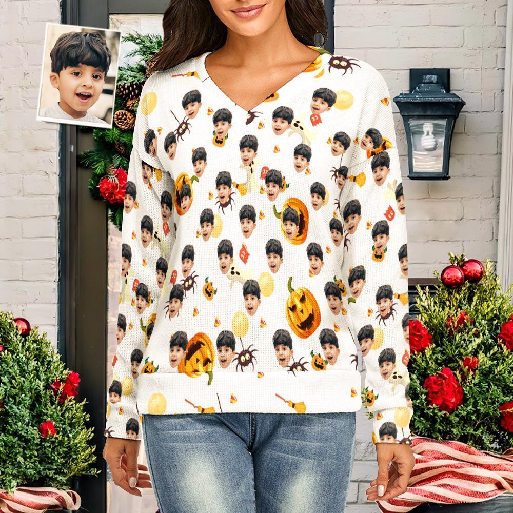 Custom Face Women Halloween Sweater Halloween Pumpkin Theme Spandex Comfortable