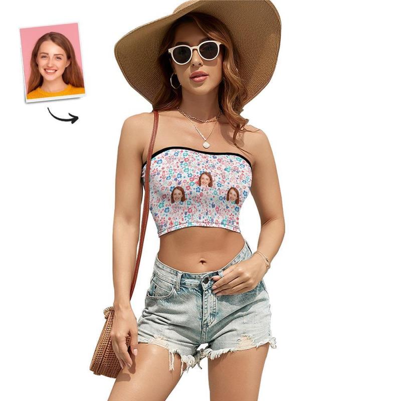 Custom Face Women's Bandeau Top Strapless Bra Sexy Tube Top For Beach Party - Flowers