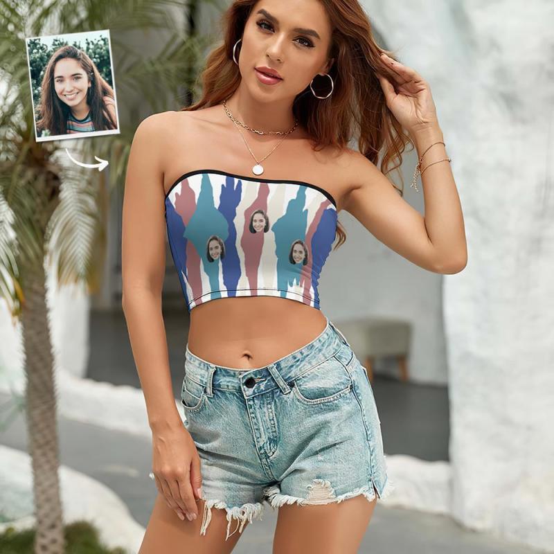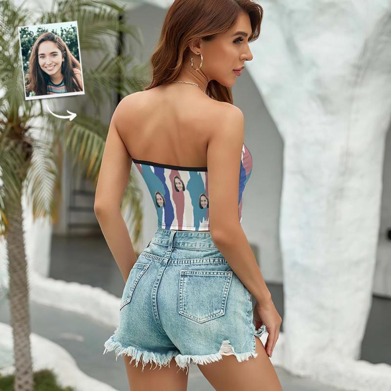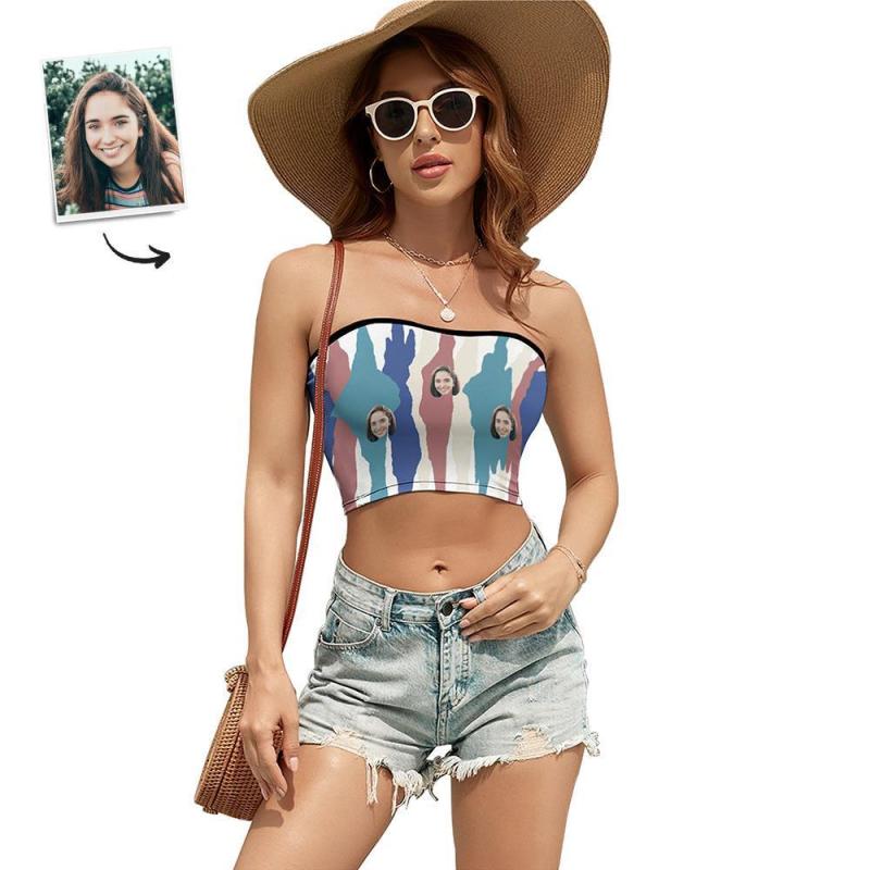 Custom Face Women's Colorful Bandeau Top Strapless Bra Sexy Tube Top For Beach Party