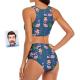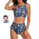 Custom Face Women's Pink Flamingo Pattern Two-piece Swimsuit