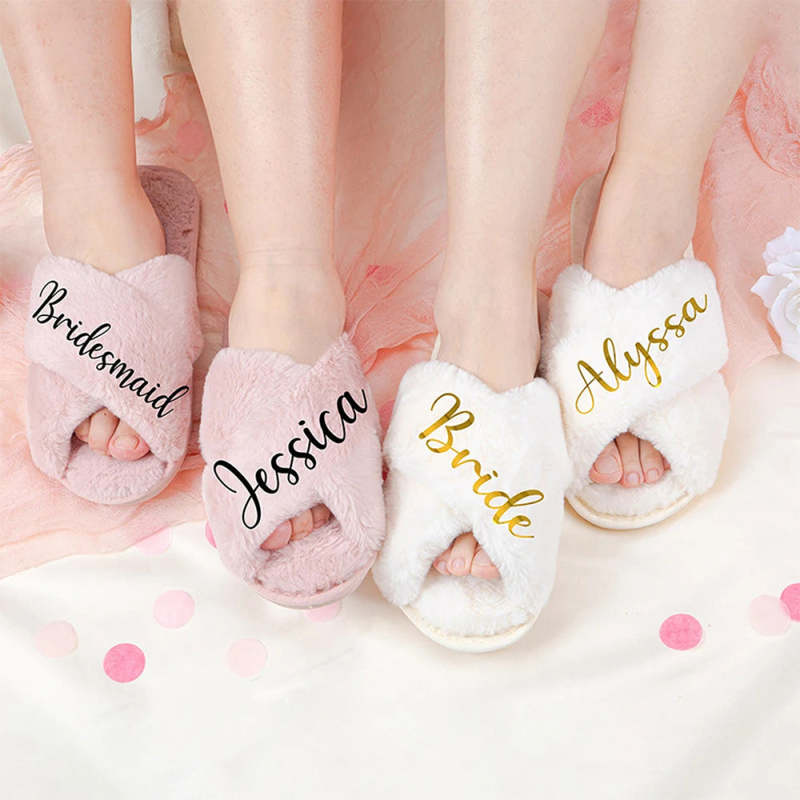Custom Fluffy Slippers Fluffy Cross Slippers Bride Slippers Bridesmaid Gift