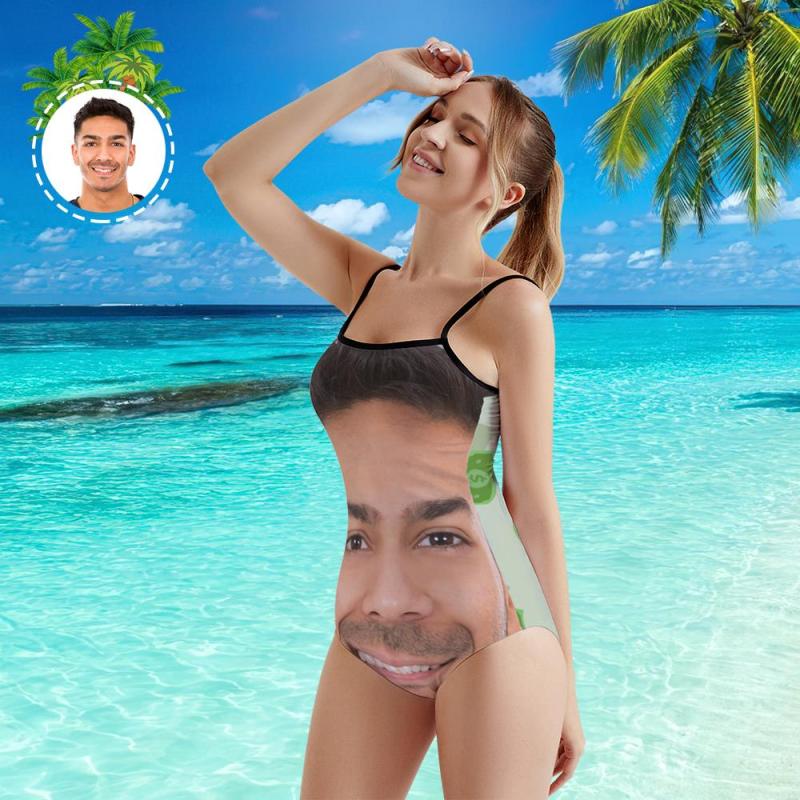Custom Funny Face Green Background Women's Slip One Piece Swimsuit