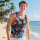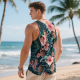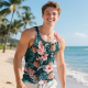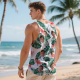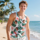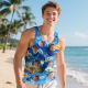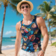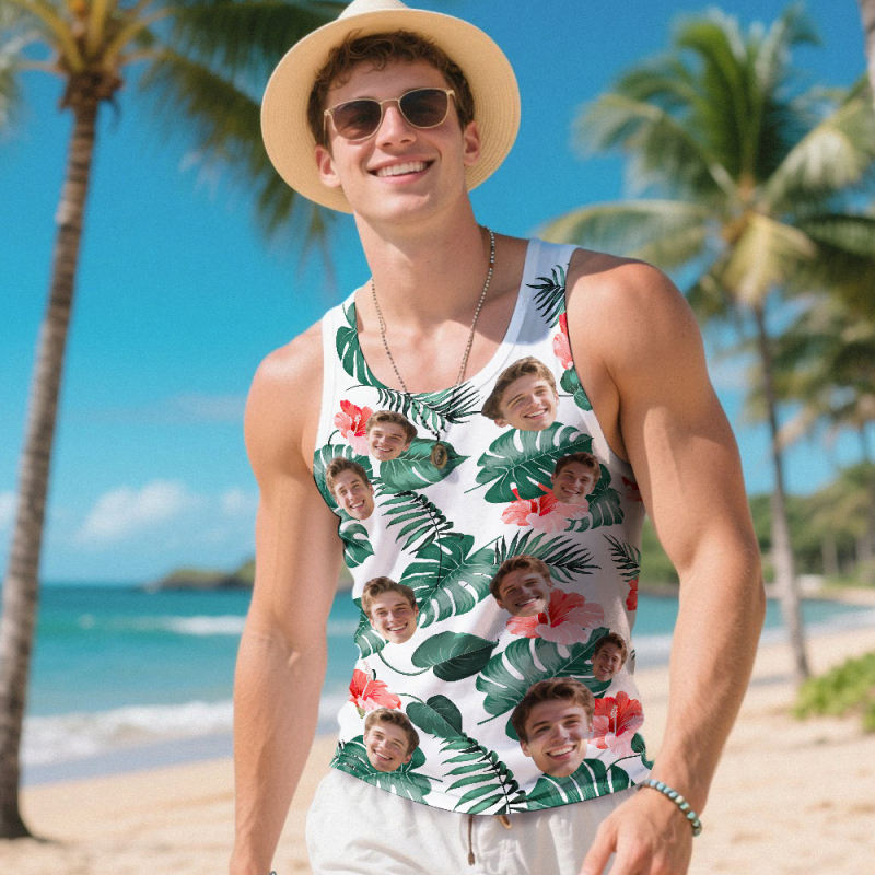 Custom Funny Face Hawaii Tank Tops Tropical Leaves Summer Hawaiian White Tank Tops For Men