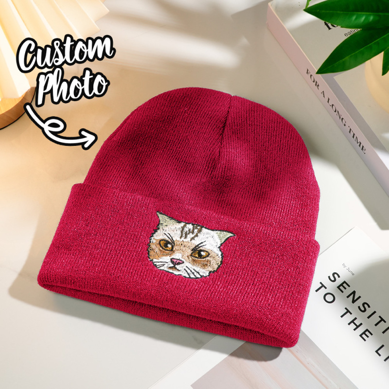 Custom Hand Embroidered Beanies, Pet Portrait Anime Beanies for Men and Women, White Labrador gifts, Winter hats Black, Gift for boyfriend