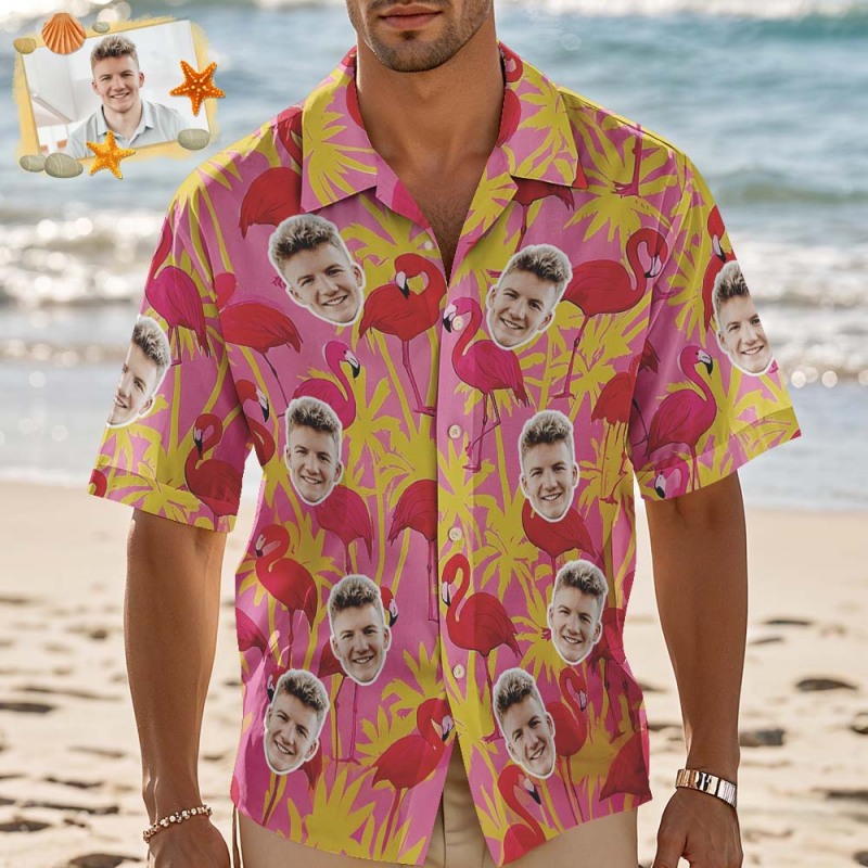 Custom Hawaiian Shirt Pink Flamingo Photo Hawaiian Shirt Funny Vacation Party Shirts