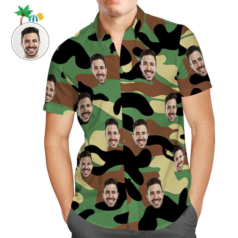 Custom Hawaiian Shirts Dark Green Camouflage Personalized Aloha Beach Shirt For Men