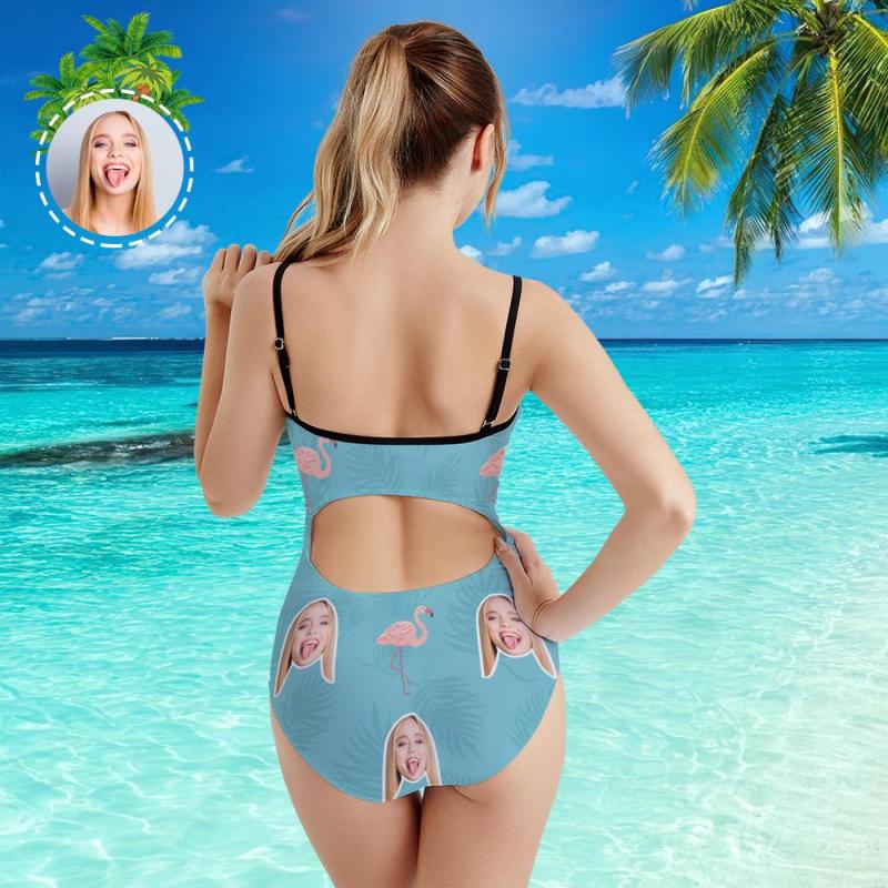 Custom Head Photo and Flamingo Women's One Piece Swimsuit