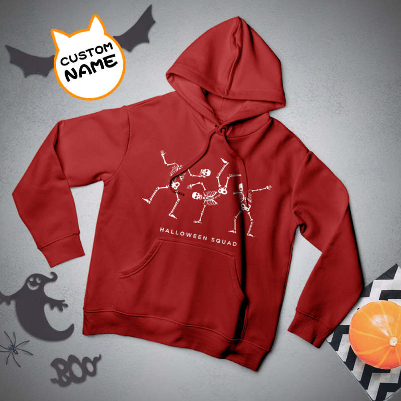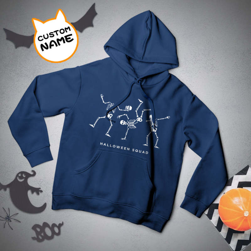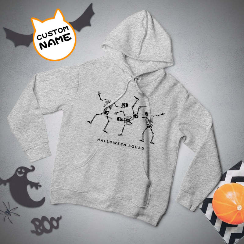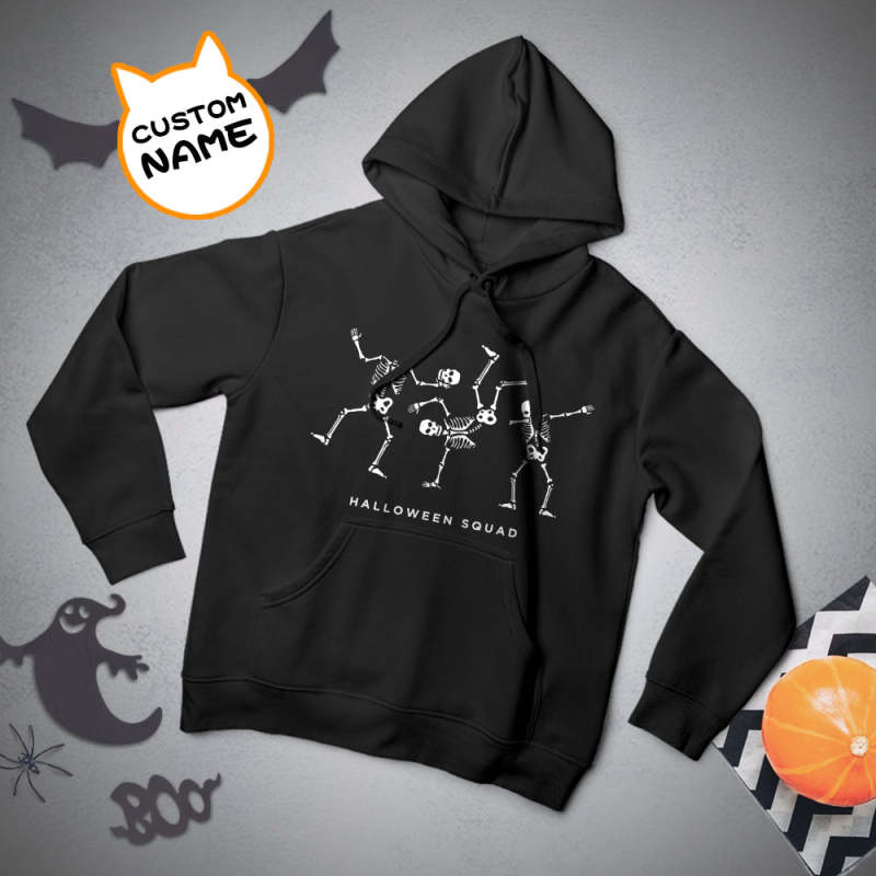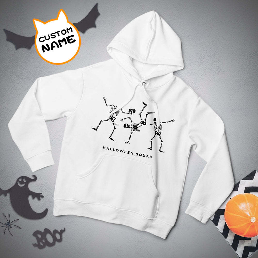 Custom Hoodie Long Sleeve Pullover Men's Hoodie Sweatshirt with Text Halloween Gift - Dancing Skeleton