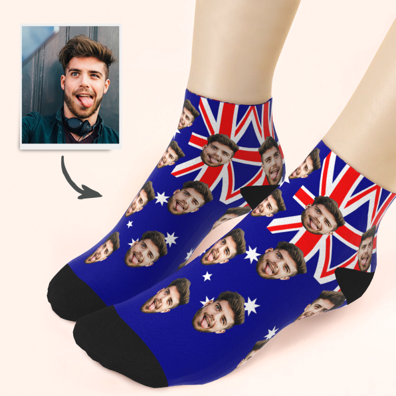 Custom Husband Face Australia Flag Ankle Socks