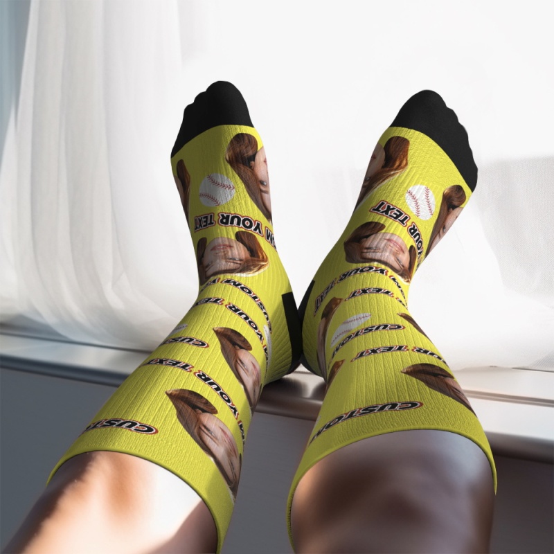 Custom Knee High SocksPhoto and Text YellowUpgrade Custom Breathable Knee-high Compression Socks