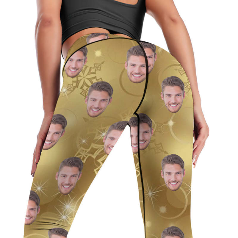 Custom Leggings Yoga Pants Personalized Photo Legging for Woman Christmas Gifts Golden Snowflake