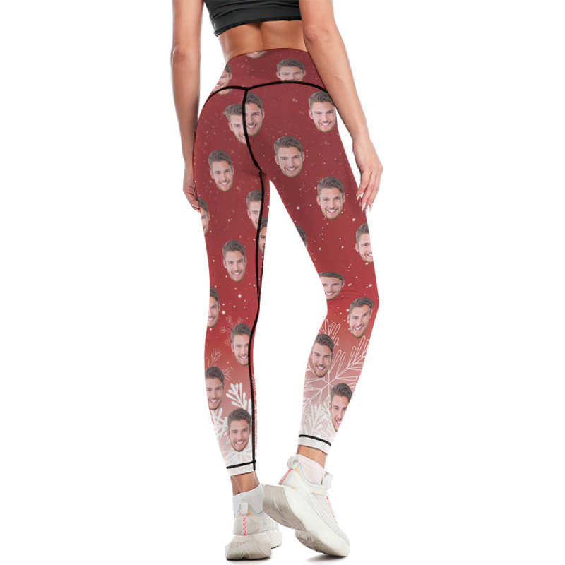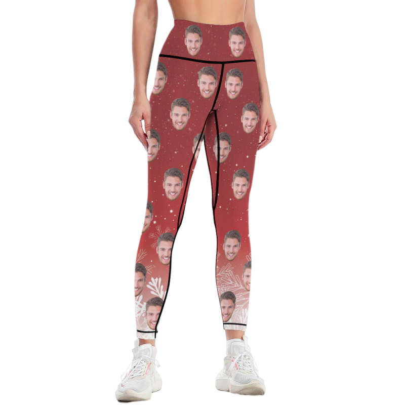 Custom Leggings Yoga Pants Personalized Photo Legging for Woman Christmas Gifts White Snowflake