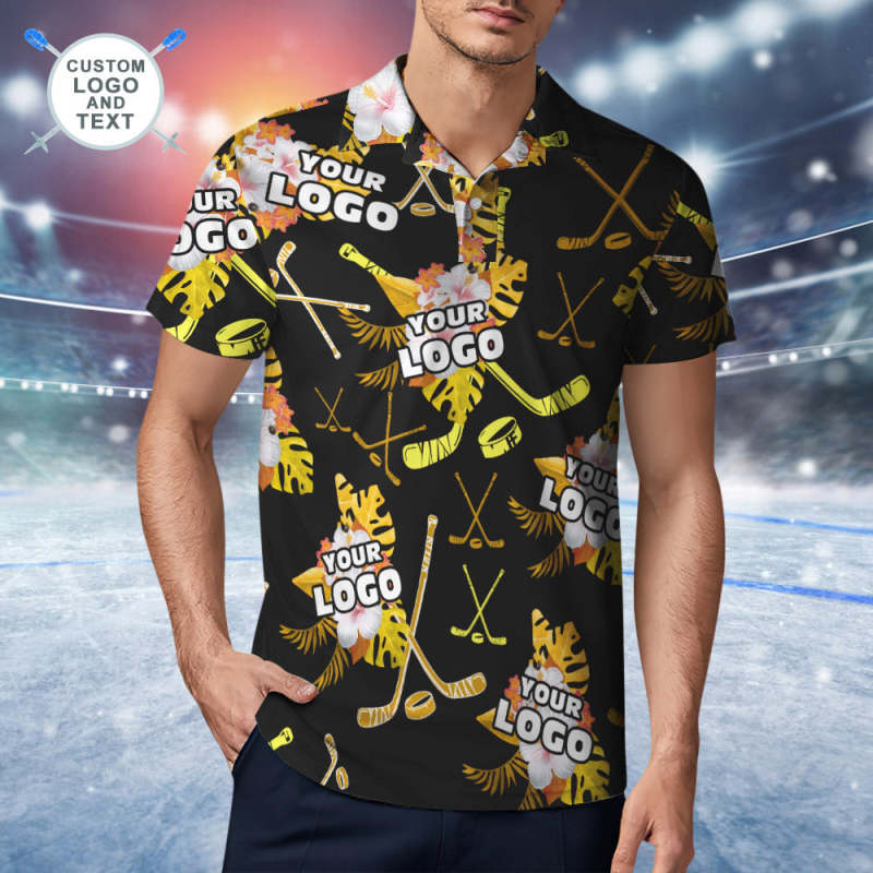 Custom LOGO Number Name Short Sleeve Polo Shirt Hockey Tropical Black & Yellow Shirt For Him
