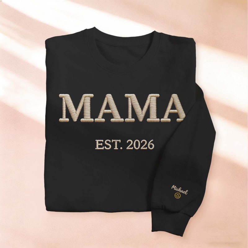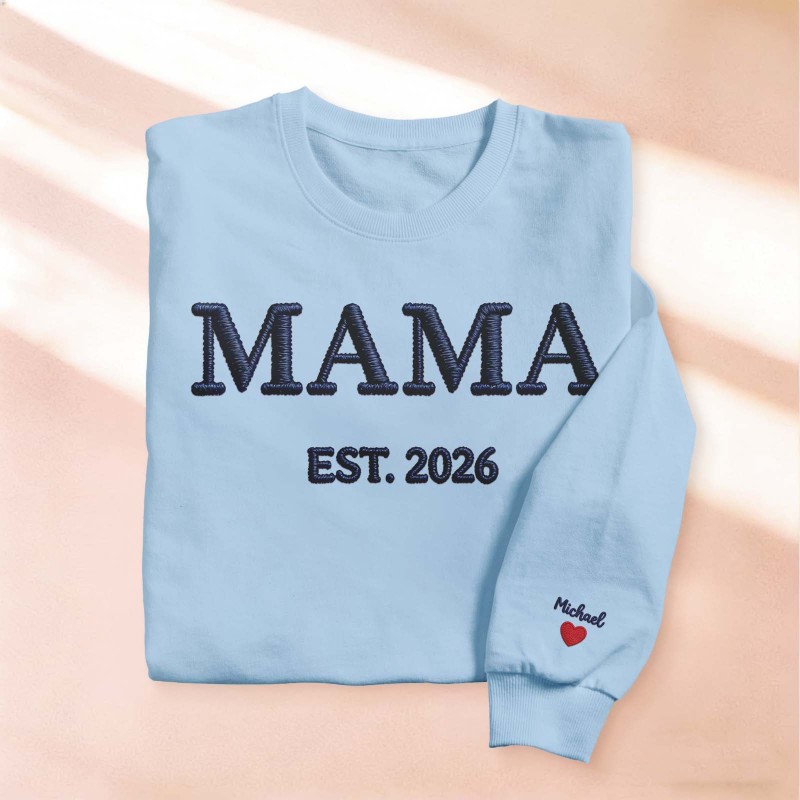 Custom Mama Embroidered Sweatshirt, Custom Mom Embroidery Hoodie, New Mom Outfit, Pregnancy Reveal Clothing, Happy Mother's Day Gifts