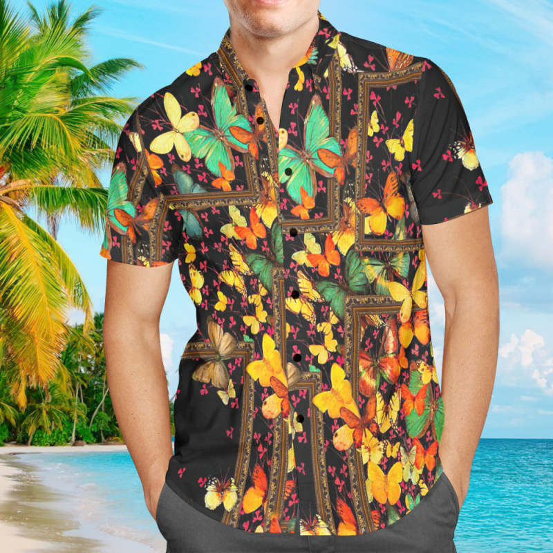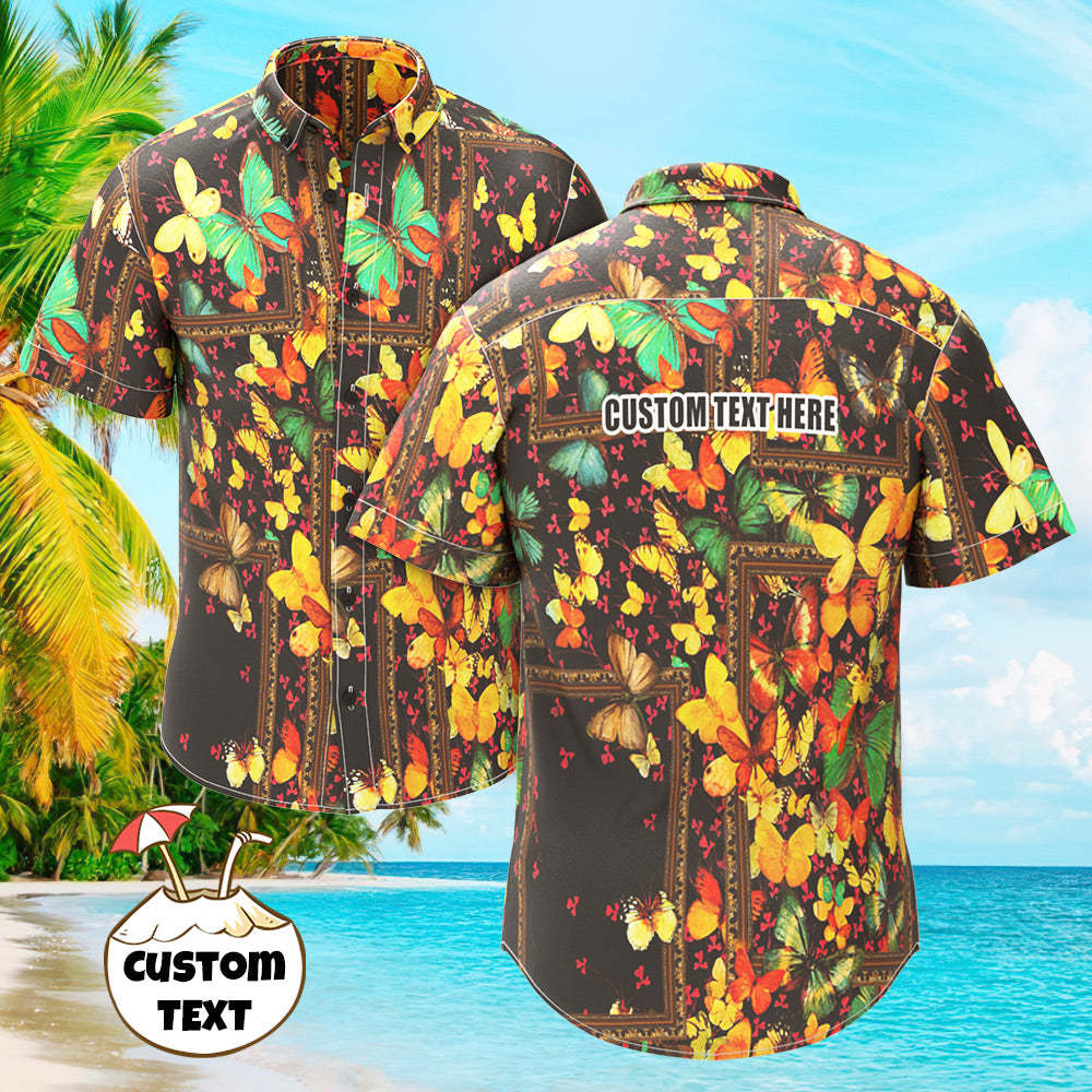 Custom Men Hawaiian Shirts with Text Personalized Vintage Butterfly Hawaiian Shirts For Men