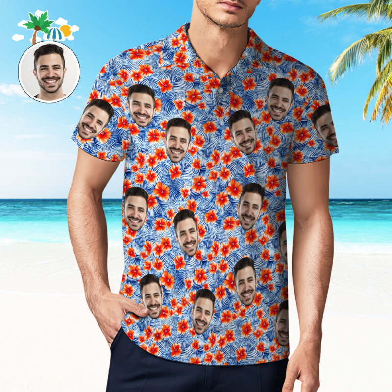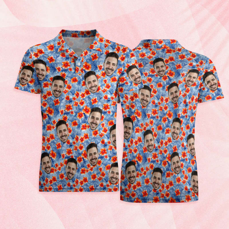 Custom Mens Face Hawaiian Polo Shirt Bloom Polo Shirt
