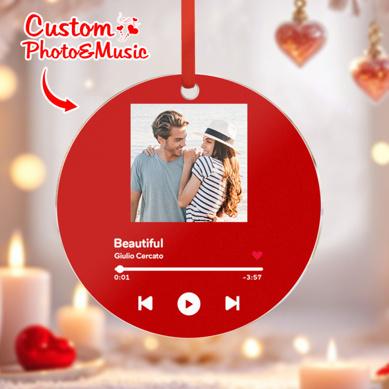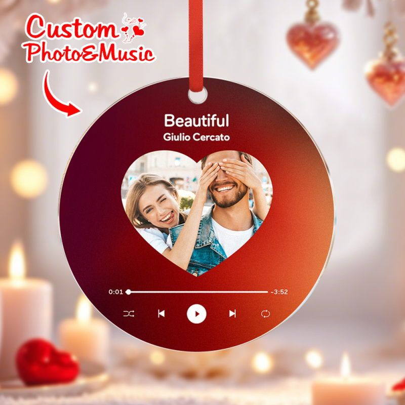 Custom Music and Photo Ornaments Valentine's Day Gifts For Couple