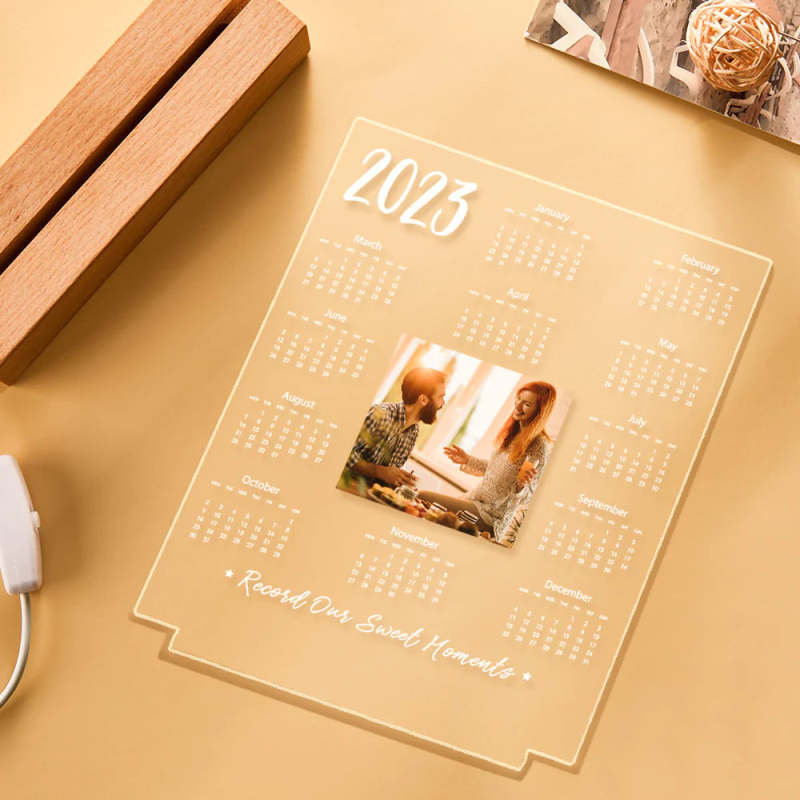 Custom Acrylic Night Light 2023 Calendar Design Home Decor Personalized Photo and Text Valentine's Day Gift for Lover