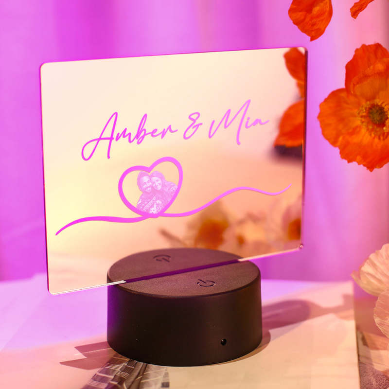 Custom Name Mirror Photo Lamp Colorful Couple Gift