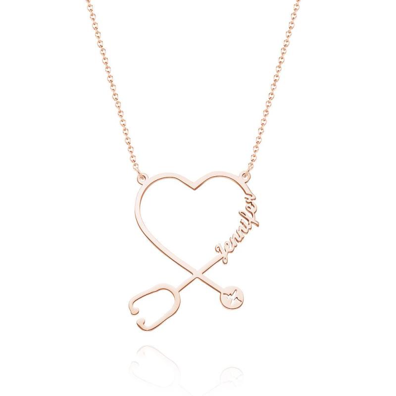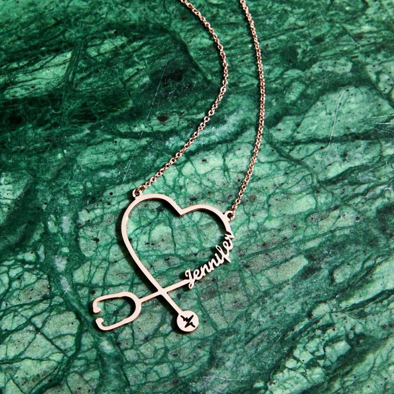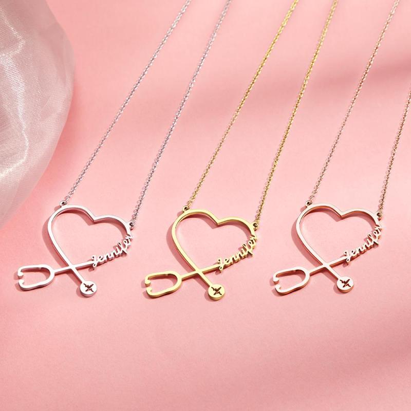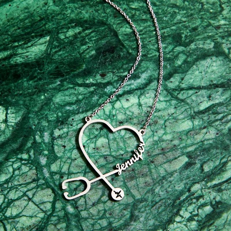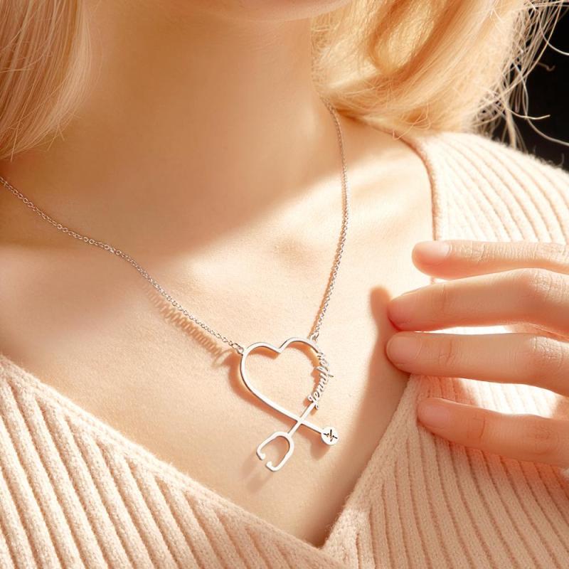 Custom Name Stethoscope Necklace Nurse Necklace Heart Name Necklace Nurse Gifts Medical Gifts