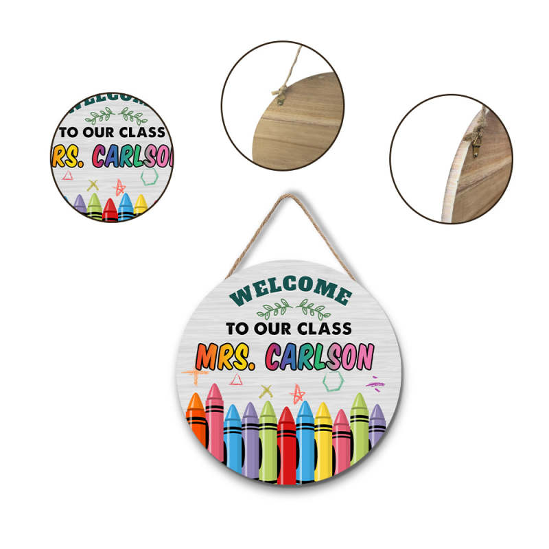 Custom Name Teacher Crayon Sign for Door, Teacher Welcome Gift