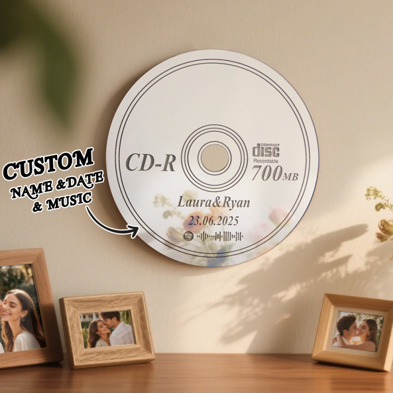 Custom Names and Music Mirror Art for Wall CD Mirror Art Deco Housewarming Gift Mirrored Wall Decor Bedroom Mirror