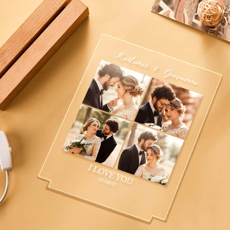 Custom Photo Acrylic Night Light Personalized Name and Date Home Decoration Valentine's Day Gift for Lover