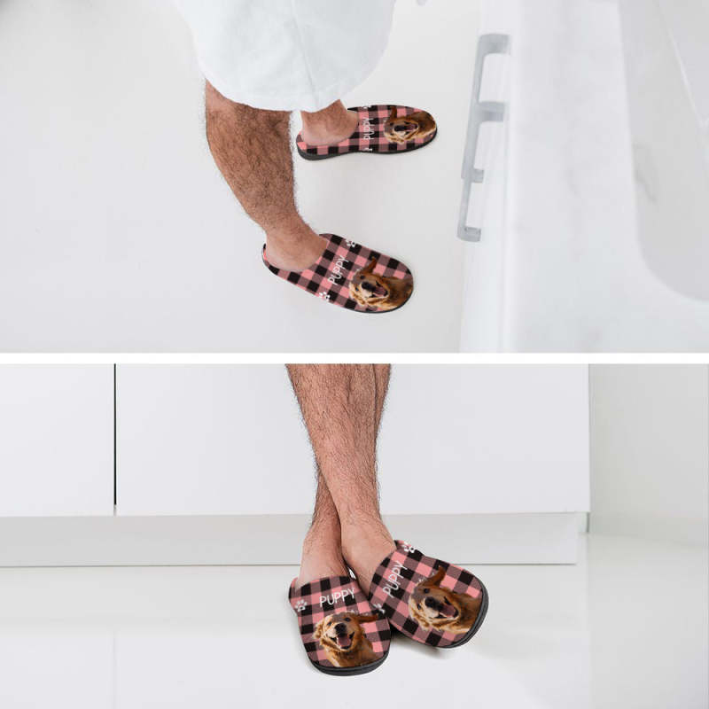 Custom Photo and Name Women Men Slippers With Footprint Personalized Pink Casual House Cotton Slippers Christmas Gift For Pet Lover