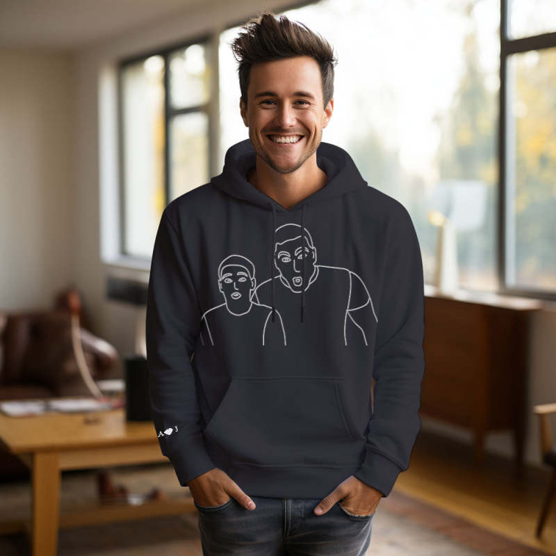 Custom Photo Embroidered Pocket Hoodie Text On Sleeve Colorful Couple Sweatshirt