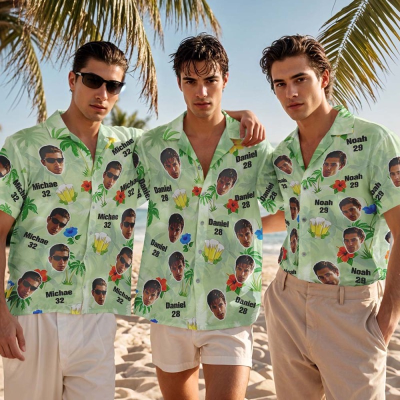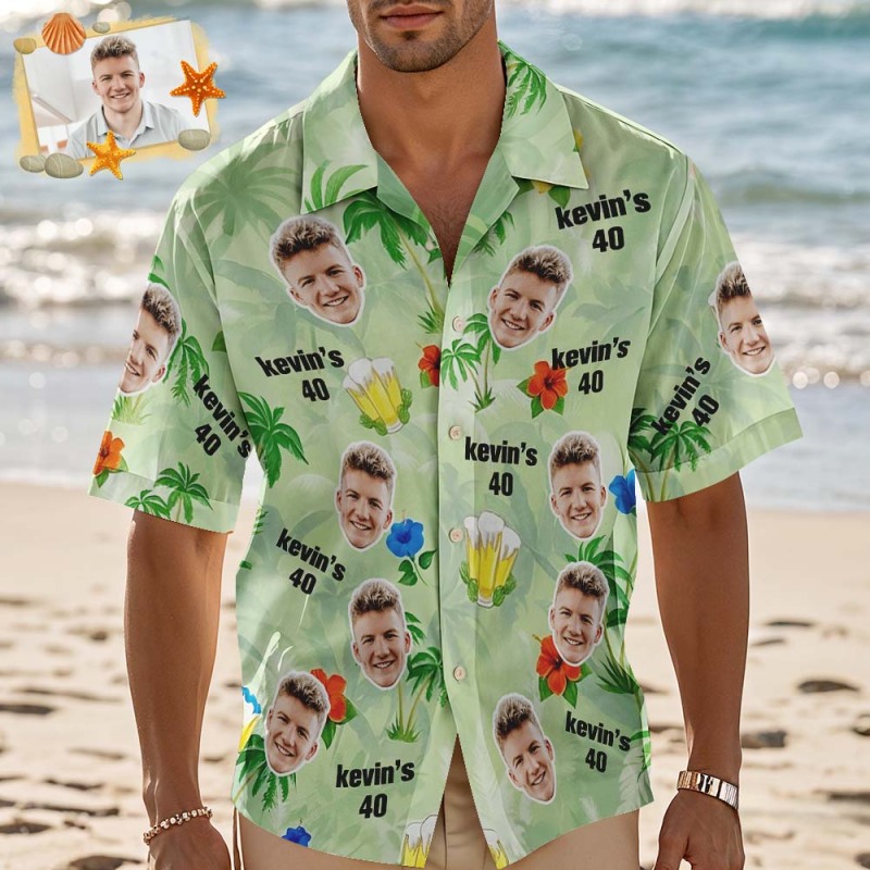 Custom Photo Hawaiian Shirt Birthday Hat Dark Blue Tropical Flowers Hawaiian Shirt Face And Name Gift