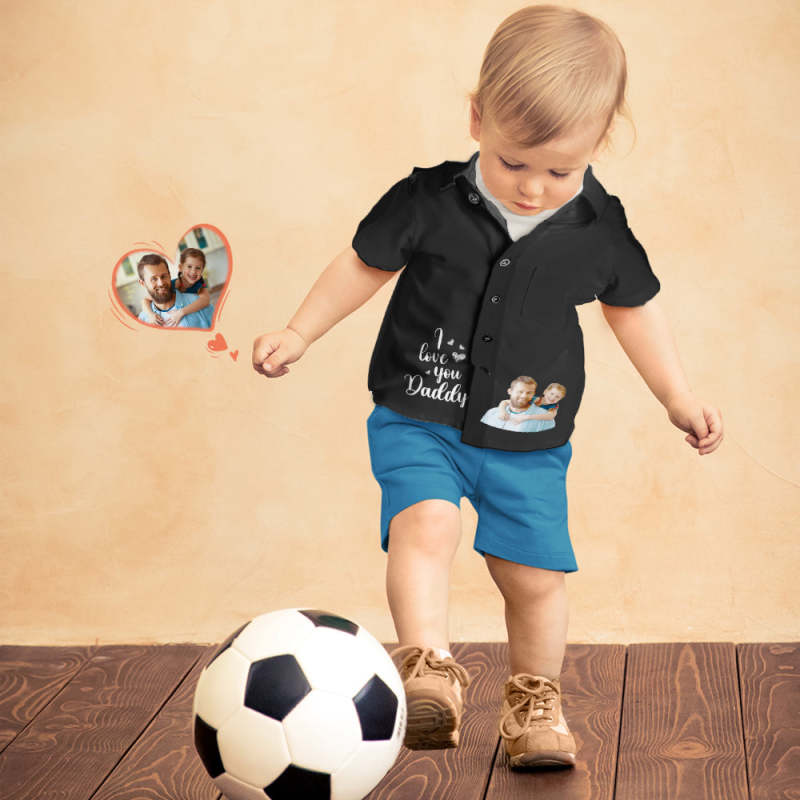 Custom Photo Hawaiian Shirt Personalised Father and kid Hawaiian Shirt Father's Day Gift - I Love You Daddy
