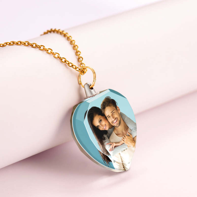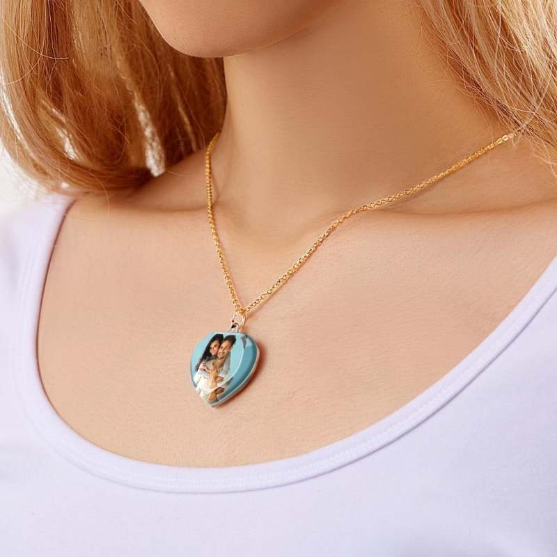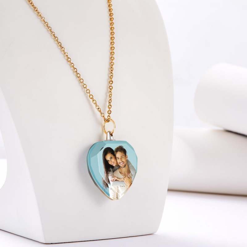Custom Photo Heart Shaped Crystal Necklace Personalized Charm Pendant Gifts for Mom