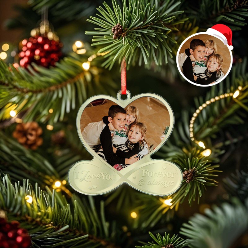Custom Photo I Love You Forever & Always - Couple Personalized Custom Mirrored Acrylic Ornament - Christmas Gift For Husband Wife, Anniversary